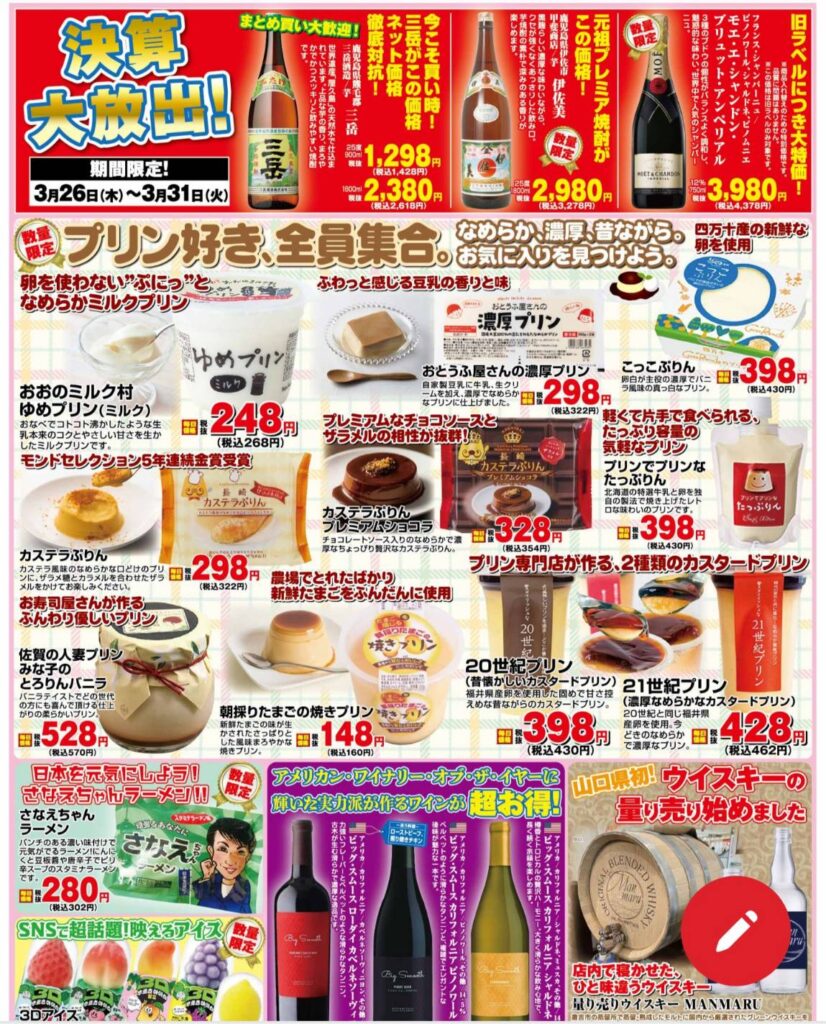 今月のチラシは、決算大放出特集です。